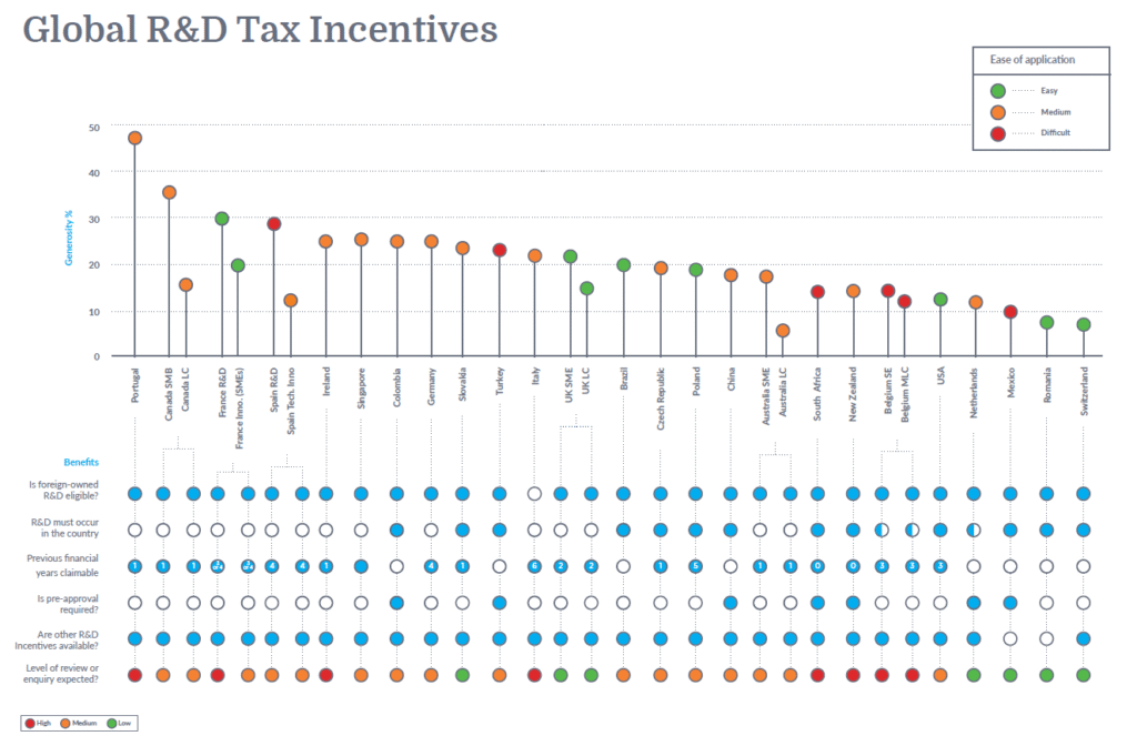 The Benchmark 2023 to aktualna wersja przewodnika po ulgach podatkowych na całym świecie. Lektura raportu pozwoli Wam kompleksowo porównać zachęty podatkowe na działalność R&D w 25 krajach na świecie.